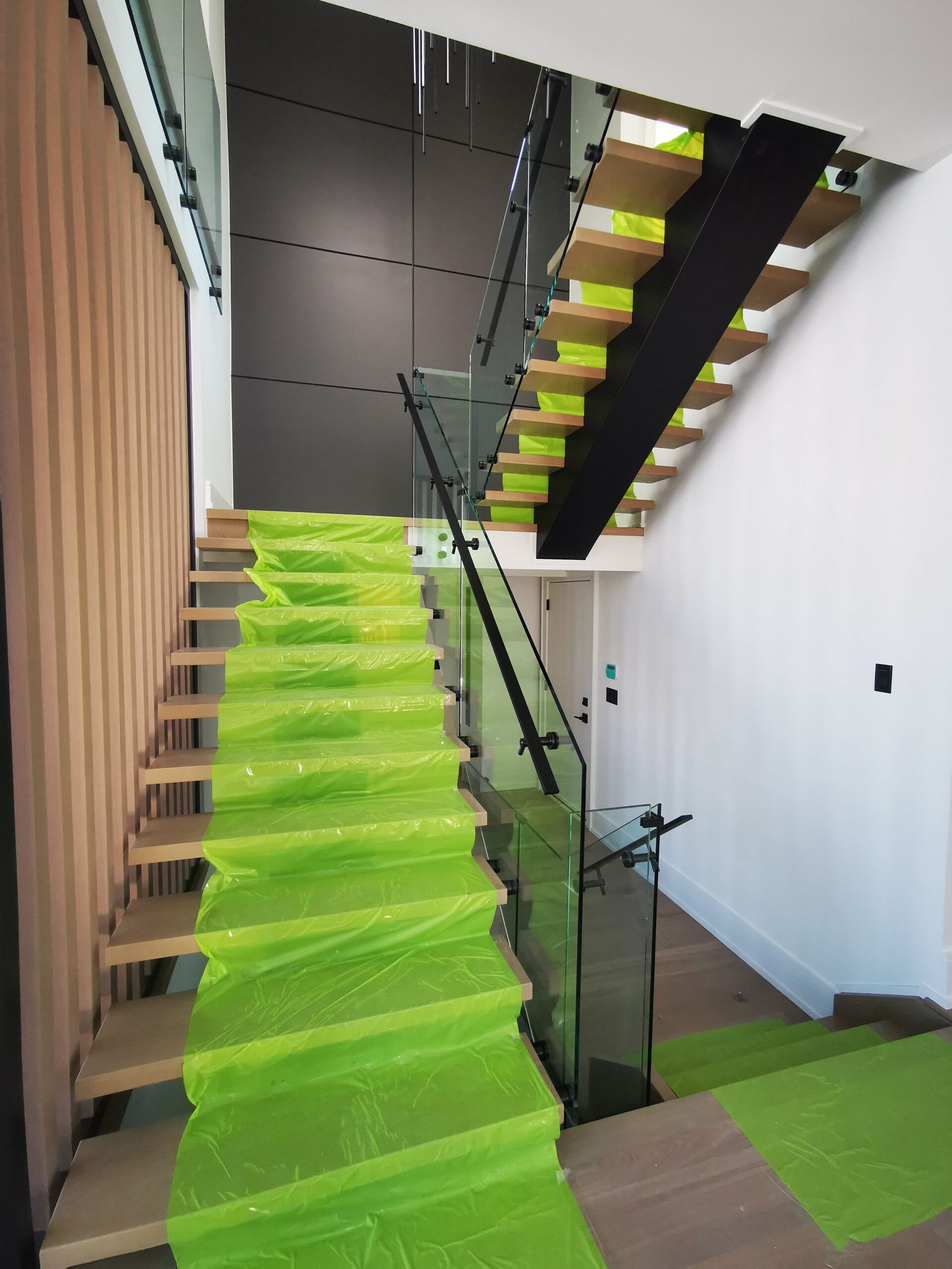 Why choose Paint Lions for stairs staining? We’re not gonna leave mess behind. Staining stairs not ending with clear coat application it ends with painting, and we finish it the right way. Decided to go with stringers and risers white? Flooring guy who will stain stairs, can definitely do it, will it look professional? Never seen before! Edges looks too thick from too much caulking, paint all over top of tread and total look of stairs is ruined.